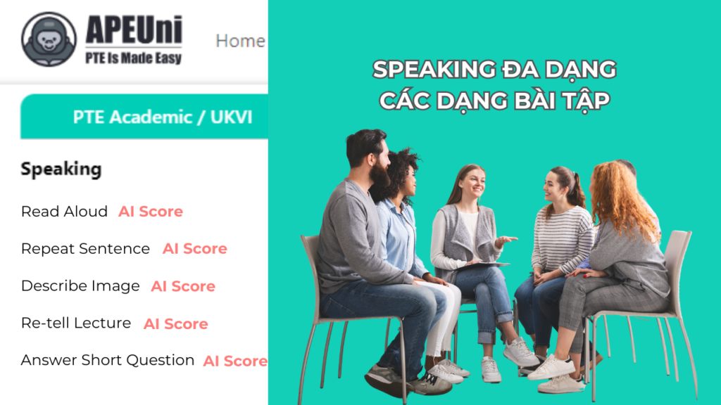 Với các bài tập đa dạng và hệ thống chấm điểm AI chính xác, phần luyện Speaking trên APEUNI giúp người học nâng cao kỹ năng nói một cách toàn diện và tự tin hơn trong kỳ thi PTE.